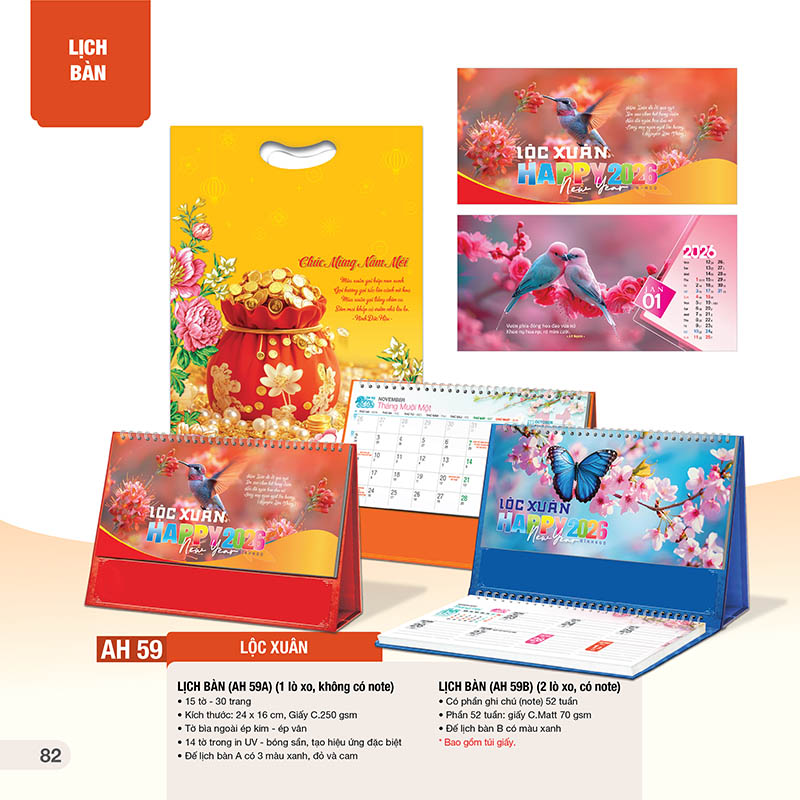 AH59 – Lịch Để Bàn 16x24Cm – Lộc Xuân