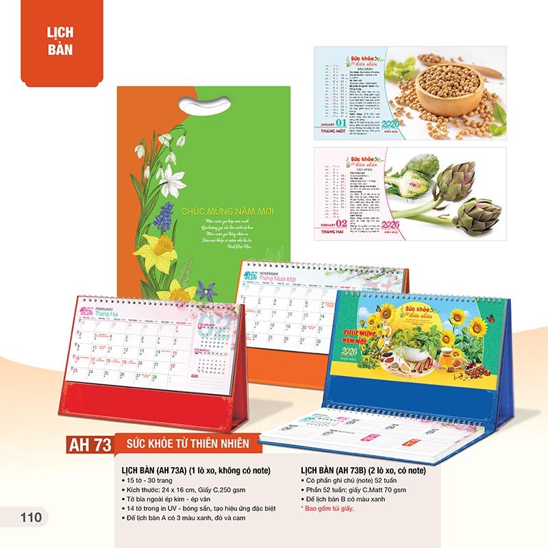 AH73 – Lịch Để Bàn 16x24Cm – Sức Khỏe Từ Thiên Nhiên