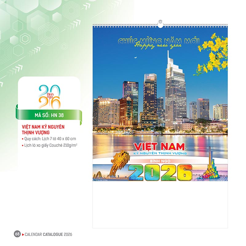 HN38 – Lịch Lò Xo 7 Tờ 40x60cm – Việt Nam Kỉ Nguyên Thịnh Vượng