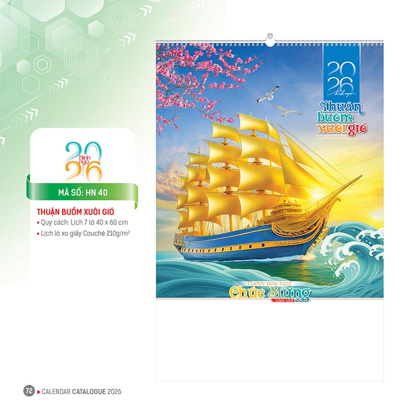 HN40 – Lịch Lò Xo 7 Tờ 40x60cm – Thuận Buồm Xuôi Gió
