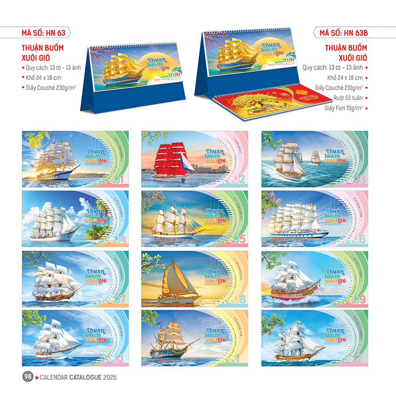 HN63 – Lịch Để Bàn 18x24Cm – Thuận Buồm Xuôi Gió