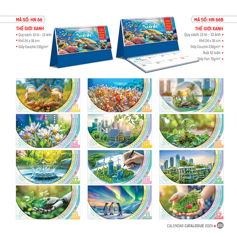 HN66 – Lịch Để Bàn 18x24Cm – Thế Giới Xanh
