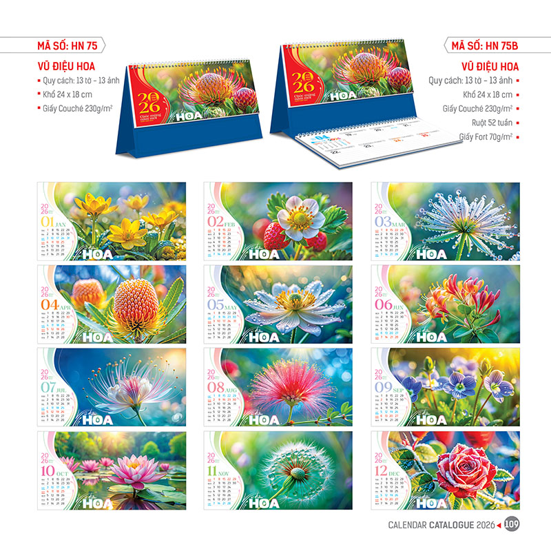 HN75 – Lịch Để Bàn 18x24Cm – Vũ Điệu Hoa