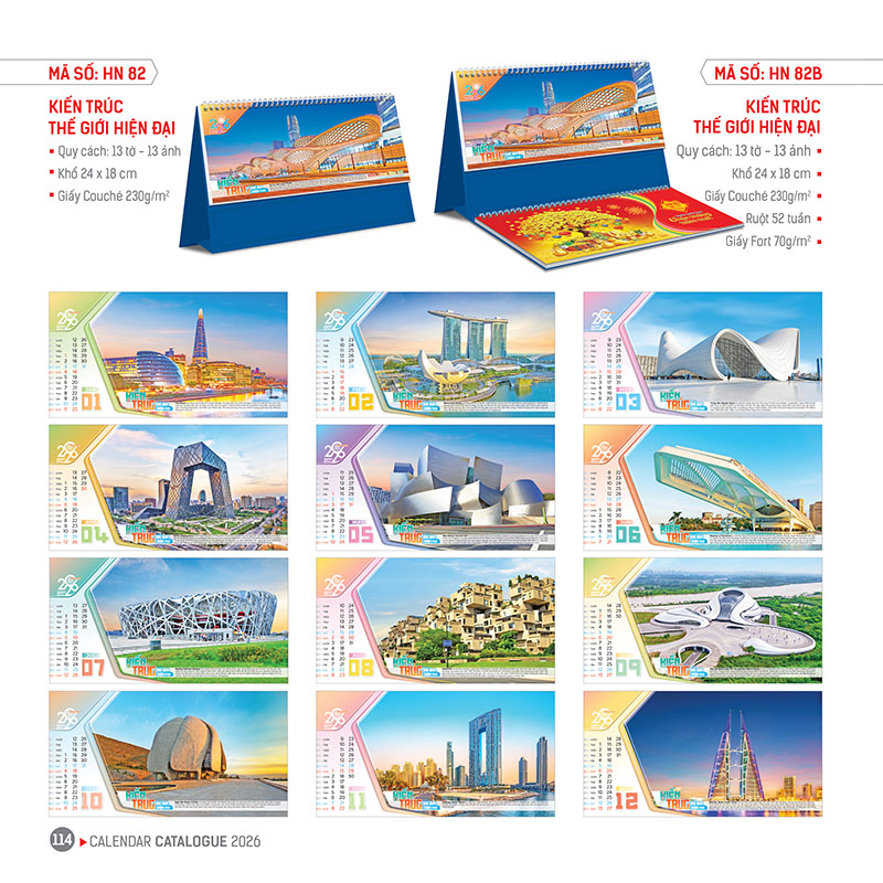 HN82 – Lịch Để Bàn 18x24Cm – Kiến Trúc Thế Giới Hiện Đại
