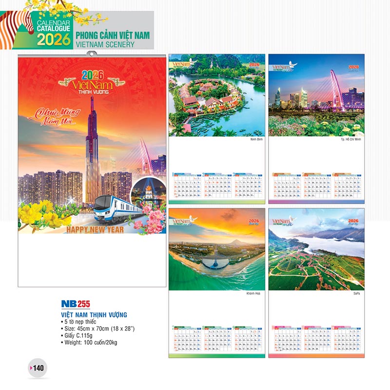 NB255 – Lịch Nẹp Thiếc 5 Tờ 45x70cm – Việt Nam Thịnh Vượng