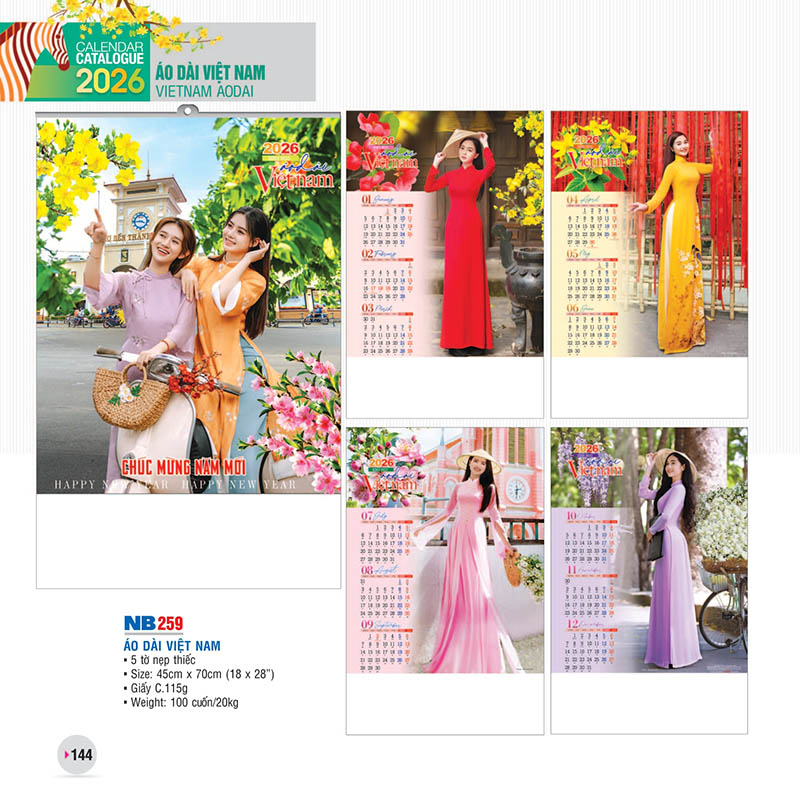 NB259 – Lịch Nẹp Thiếc 5 Tờ 45x70cm – Áo Dài Việt Nam