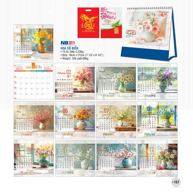 NB311 – Lịch Để Bàn A 19x21Cm – Hoa Cổ Điển